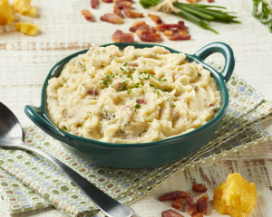 Creamy mashed potatoes loaded with a savory mix of bacon, cheddar cheese, and chives. Pairs perfectly with a variety of meat and poultry options.