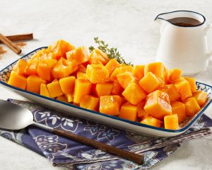 Sweet potatoes cooked until fork tender and combined with a delicate seasoning of butter, cinnamon and maple syrup. The perfect side for any meal.